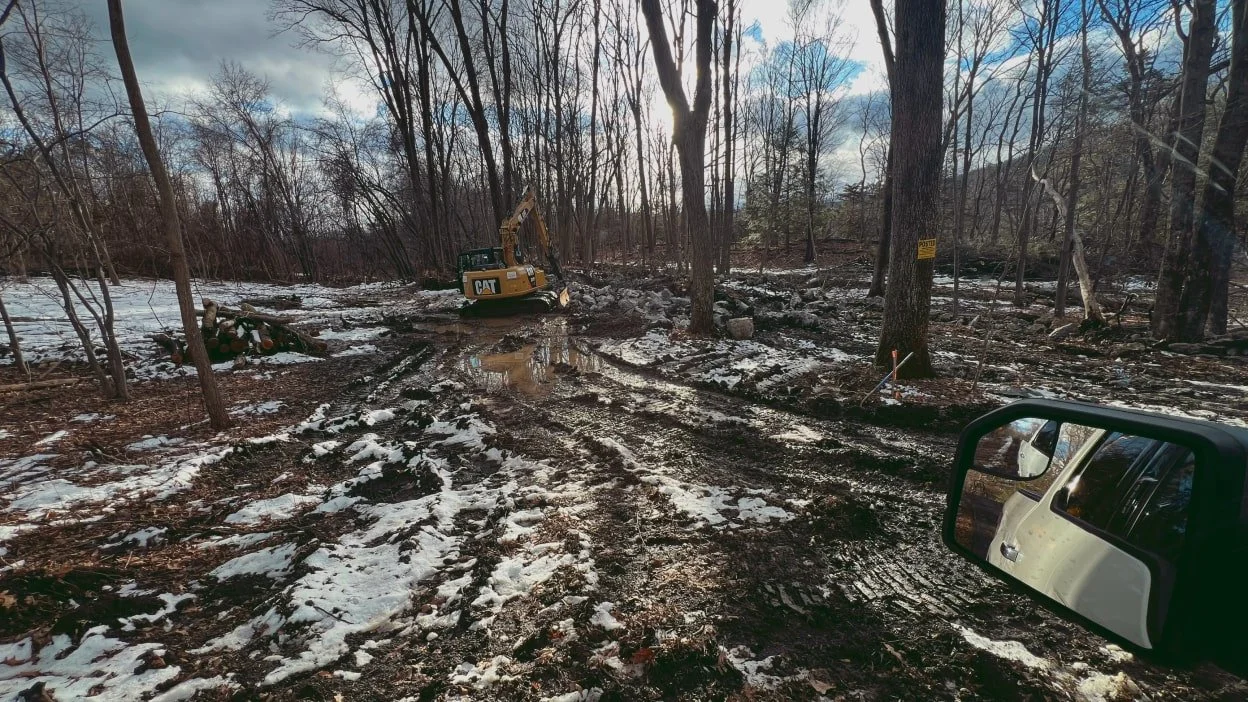 The initial work included removing all trees to clear the area for the upcoming construction of a 2-bedroom, 1.5-bath barnhouse and its necessary infrastructure.